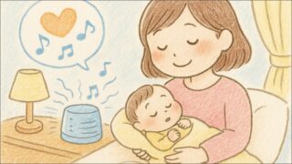 赤ちゃんの寝かしつけに音が効く理由をやさしく解説。ホワイトノイズやオルゴールの効果、安全な音量や距離、先輩ママの実例までまとめた安心ガイドです。